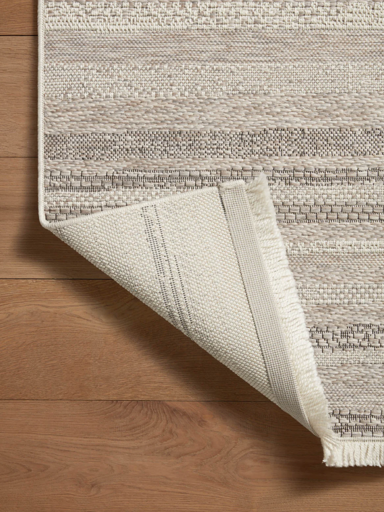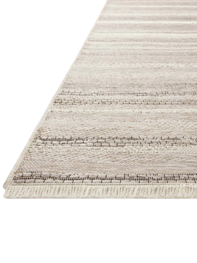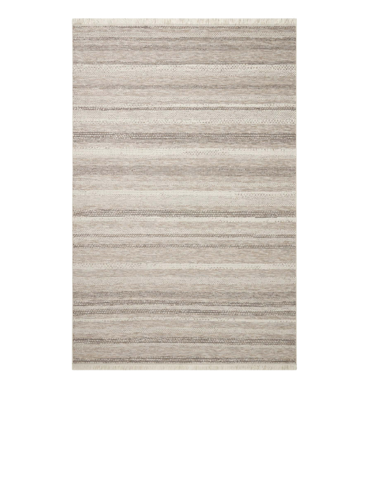 Es una alfombra ideal para crear una base de calma en cualquier habitación. Su paleta de colores marfil y gris paloma complementa perfectamente decoraciones minimalistas, costeras o de estilo escandinavo. Es la elección perfecta para dar vida a un salón, un patio cubierto, o incluso un dormitorio, aportando calidez y un toque de diseño atemporal.
