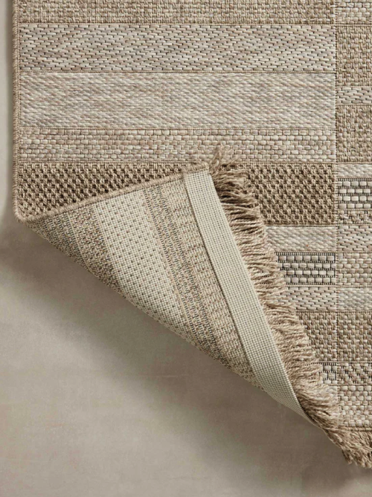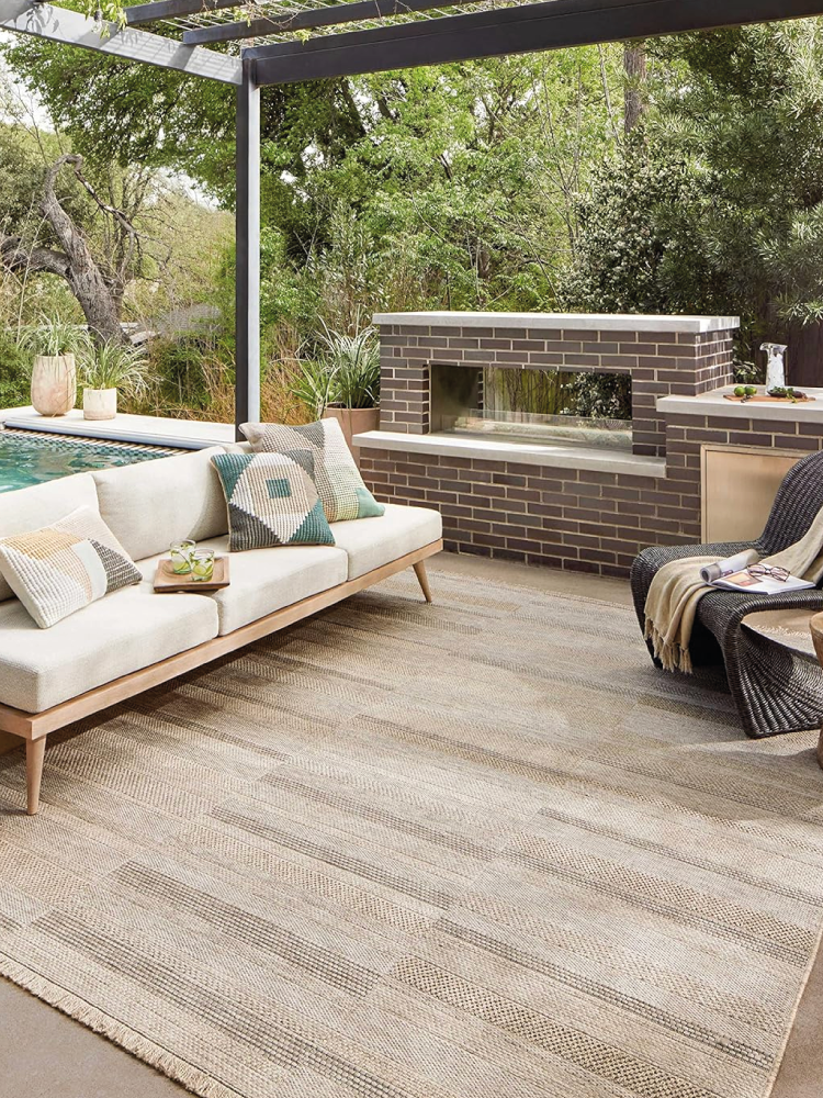 Fabricada para los días soleados, la colección Dawn es una alfombra para interiores y exteriores que parece una alfombra tejida de sisal pero que está tejida 100% con polipropileno, lo que la hace resistente al agua y al moho (por lo que está lista para los días lluviosos que se avecinan). también). Disponible en patrones gráficos modernos en tonos neutros beige,