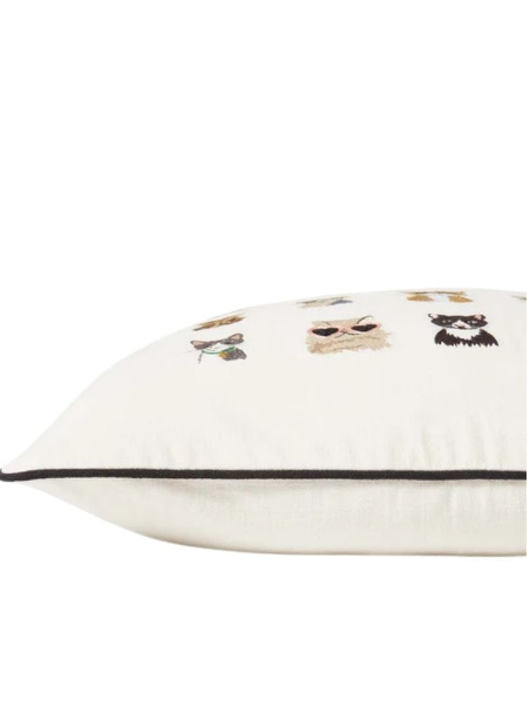 Aporta un toque de dulzura y encanto a tu decoración con este cojín. Tejido a máquina con una construcción de alta calidad, este cojín está confeccionado en 100% algodón, ofreciendo una textura suave y agradable. Su diseño presenta un adorable motivo de gatitos sobre un fondo blanco. Cuenta con un cierre de cremallera oculta para un aspecto pulcro y un ribete de contraste que define sus bordes. La cremallera tiene un elegante acabado dorado pulido. El reverso del cojín es de color marfil. Fabricado en India.