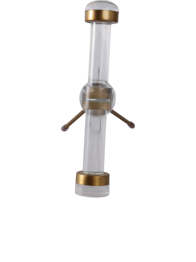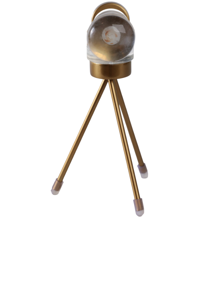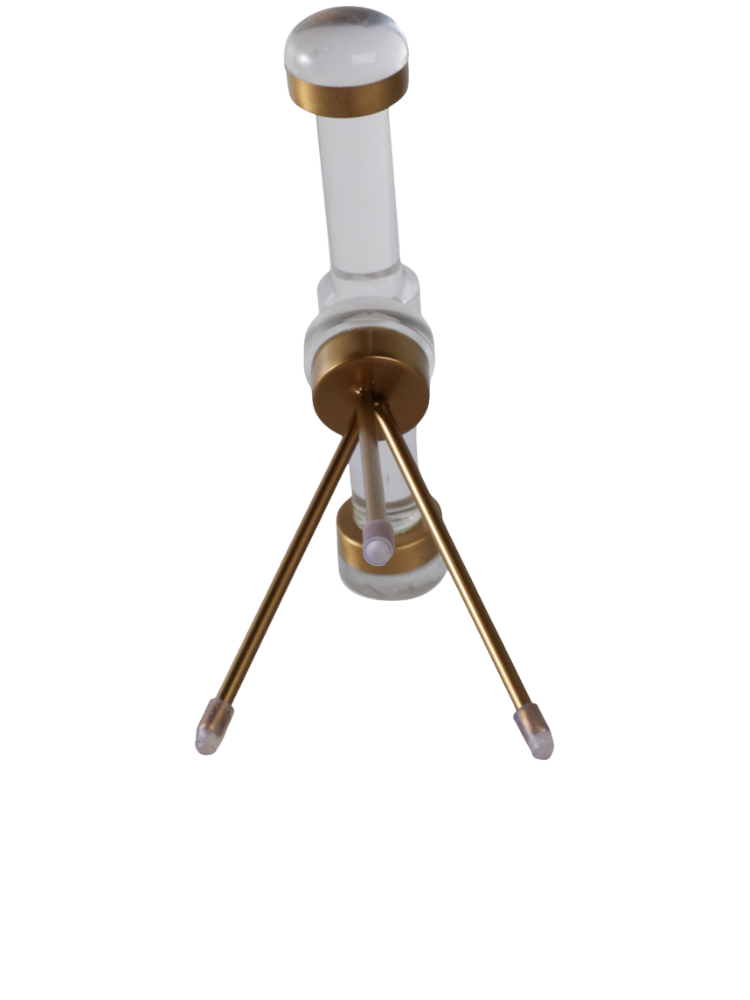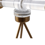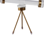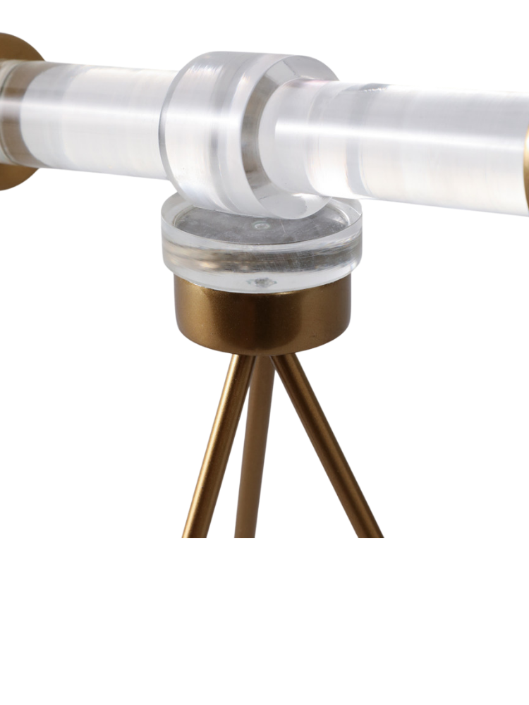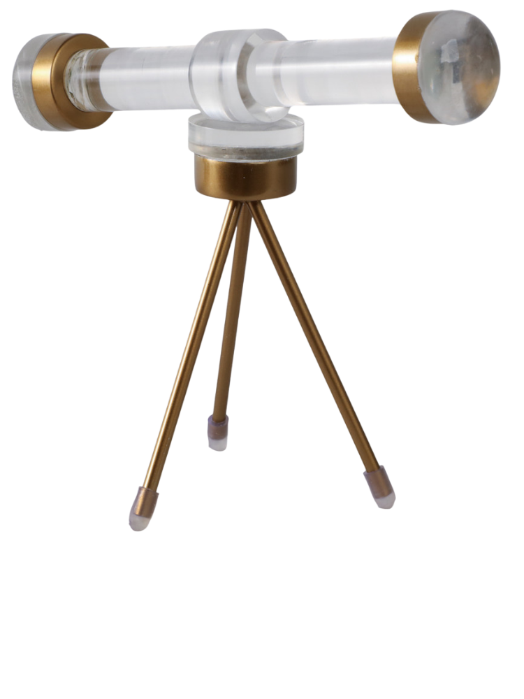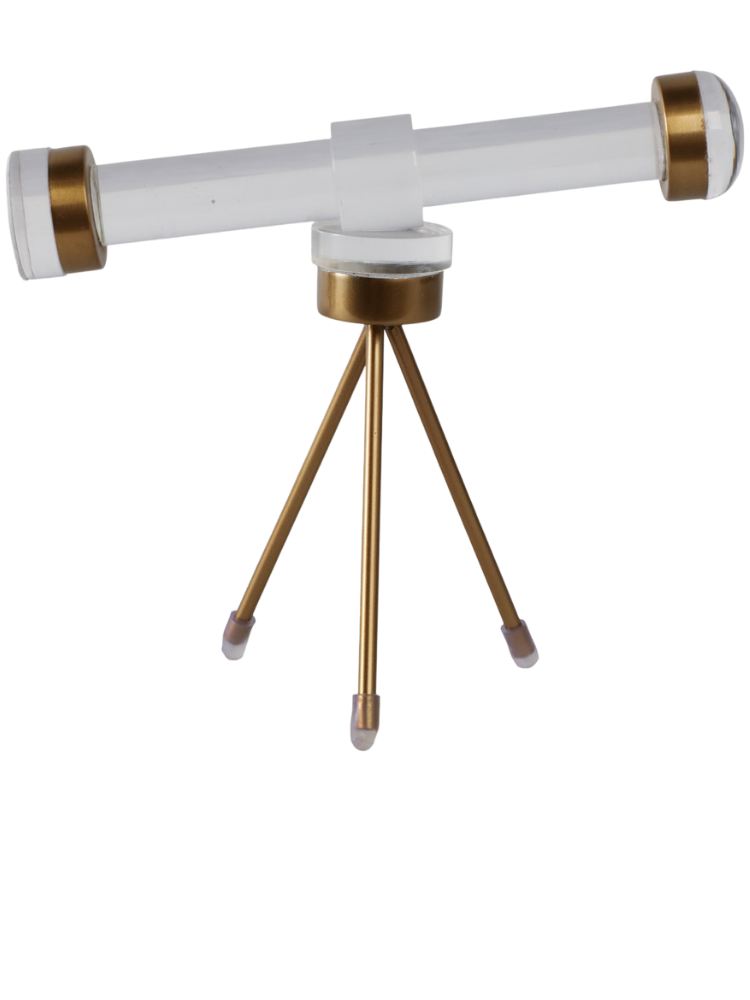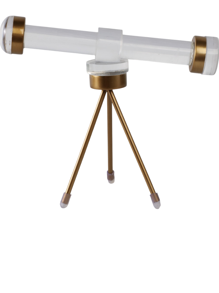 Esta pieza de decoración, que evoca la forma de un antiguo telescopio, combina el acrílico transparente y el metal dorado para un estilo único y moderno. Con una base de trípode dorada, el objeto resalta en cualquier lugar, ya sea en un estante, un escritorio o una mesa de centro. Su diseño y materiales transparentes y brillantes le dan un toque de sofisticación, ideal para quienes buscan un acento decorativo que sea a la vez elegante y distintivo.
