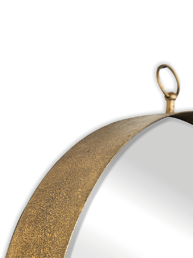 Nuestro espejo circular con argolla para colgar y marco metálico dorado es la combinación perfecta de lujo y estilo. El marco metálico dorado añade un toque de elegancia y sofisticación, mientras que la argolla para colgar facilita su instalación en cualquier pared. Este espejo es una adición impresionante a cualquier espacio, ya sea en el dormitorio, el baño, o en el pasillo.