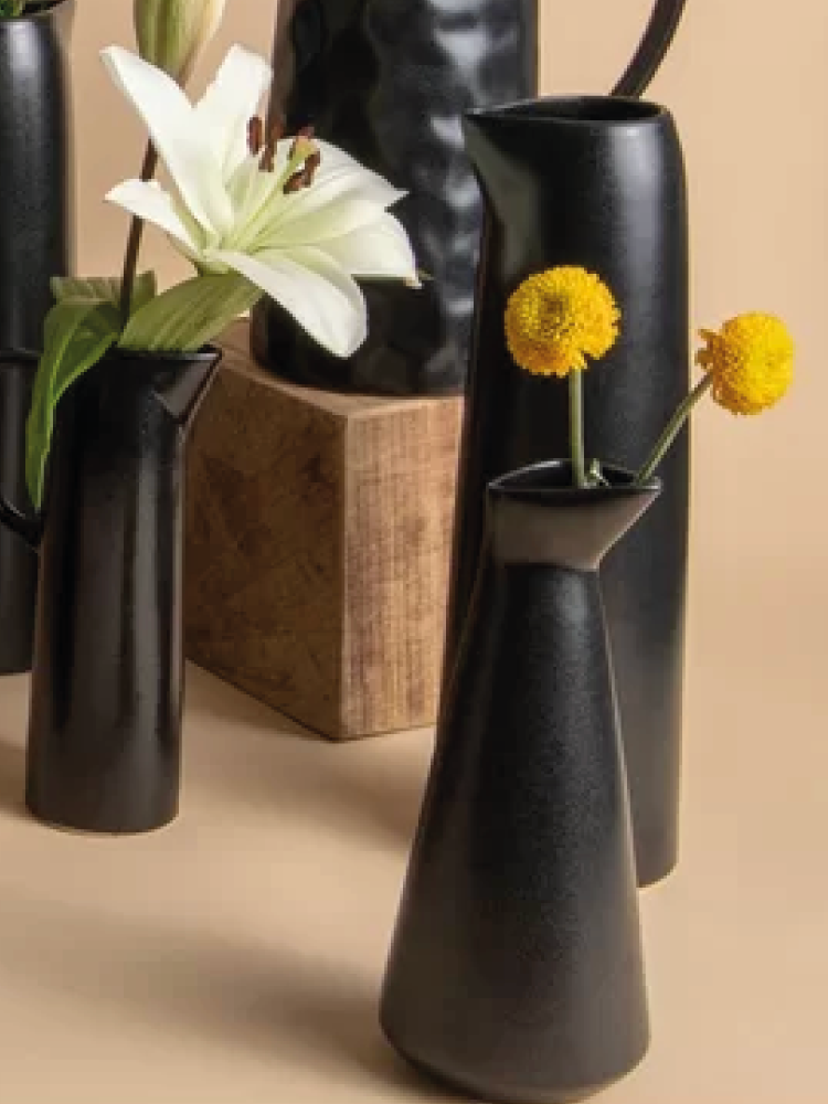 Esta encantadora jarra de cerámica en color negro es una pieza versátil que combina funcionalidad y belleza en igual medida. Diseñada para su uso como una pieza utilitaria en una mesa de comedor, esta jarra también puede ser utilizada como un florero decorativo para realzar la belleza de tus arreglos florales.