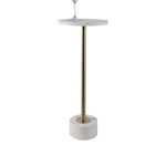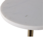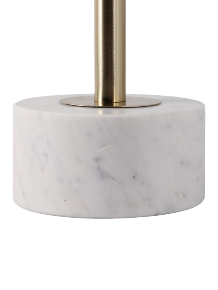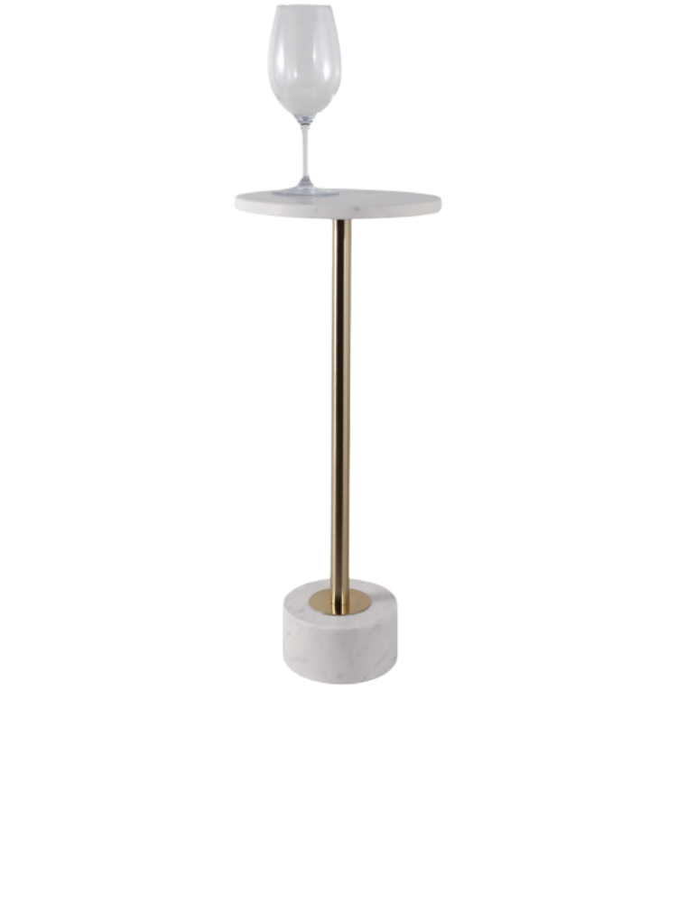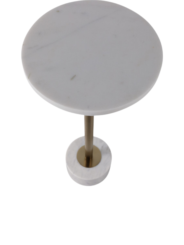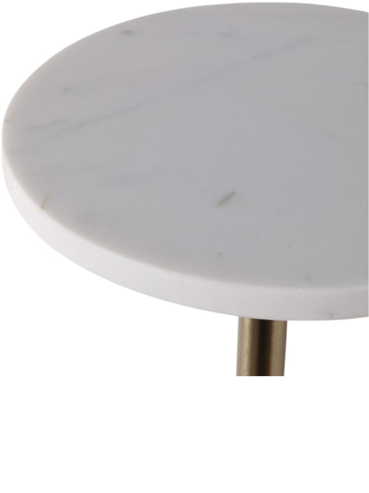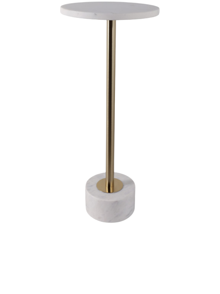 Esta elegante mesa auxiliar combina funcionalidad y diseño contemporáneo en una pieza sofisticada ideal para complementar cualquier espacio. Su estructura minimalista destaca por una base cilíndrica de mármol blanco sólido que aporta estabilidad y un toque de lujo. Una delgada barra metálica en acabado dorado conecta la base con la superficie, también de mármol blanco, creando una silueta estilizada y moderna. Su diseño limpio y elegante la convierte en un elemento versátil que se adapta fácilmente a estilos decorativos como el moderno, escandinavo o glam. Ideal para exhibir una copa, una lámpara pequeña o elementos decorativos sutiles, esta mesa es tanto funcional como ornamental.