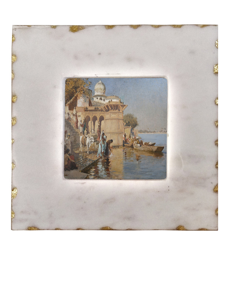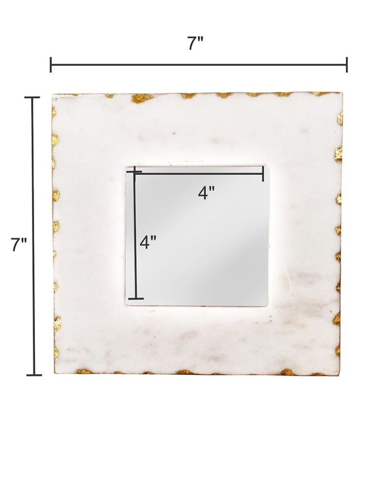 Este es un elegante marco de fotos Claire de mármol blanco diseñado para complementar cualquier mesa, estantería o escritorio. Su lujoso acabado de mármol está sutilmente acentuado con un ribete dorado (Gold Trim), que añade un toque de brillo y sofisticación. Este marco clásico permite exhibir sus recuerdos más preciados en un formato cuadrado.